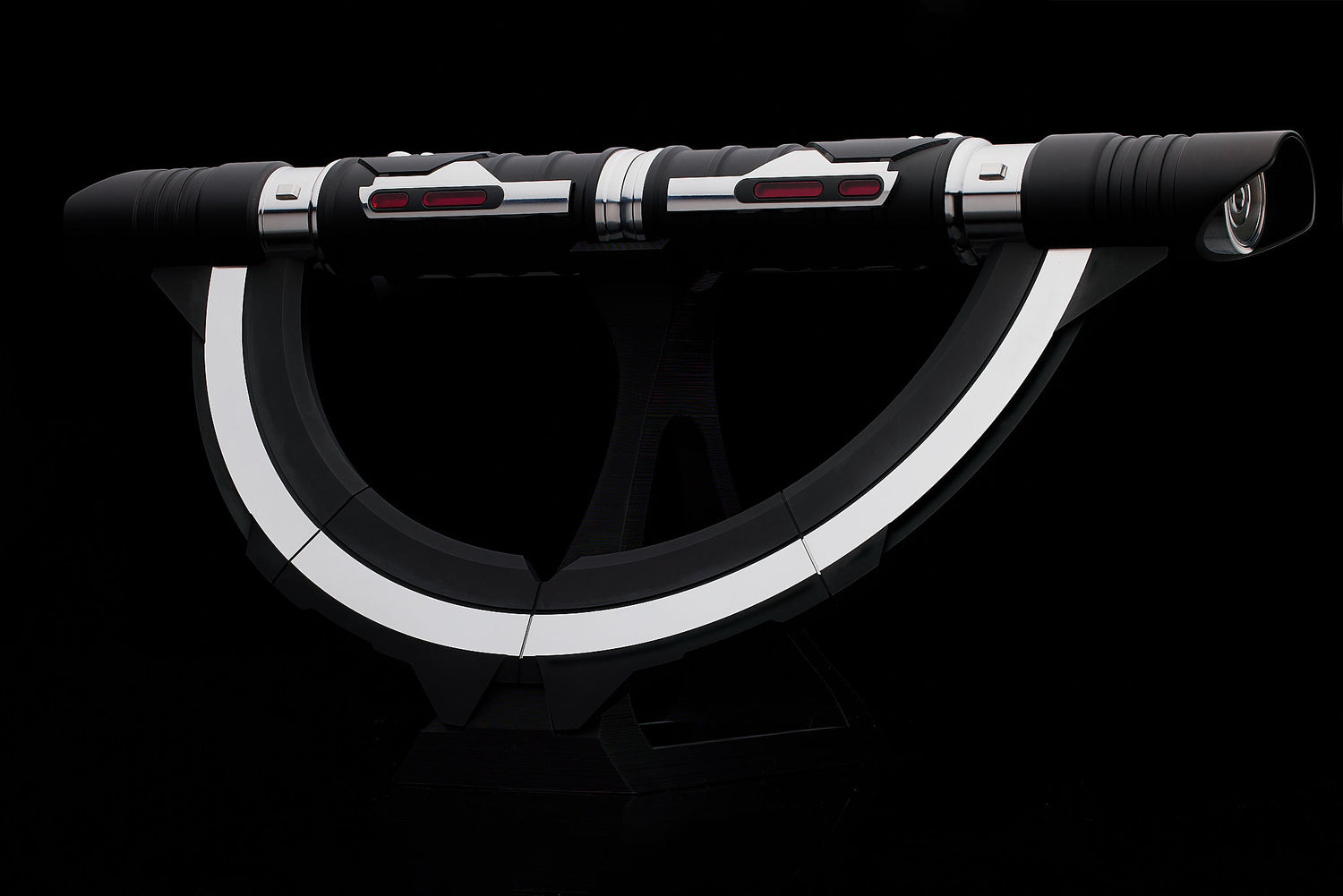 Designed in partnership with Shadowfoil Props, this saber was crafted by Exar Kun and is the first recorded double bladed saber.